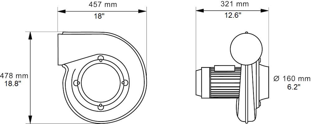 Poistovarsiin. Suojausmuoto IP54. Kotelo sinkittyä teräslevyä. Tuulettimen pyörä on valmistettu silumiinista ja sijoitettu suoraan moottorin akselille.
