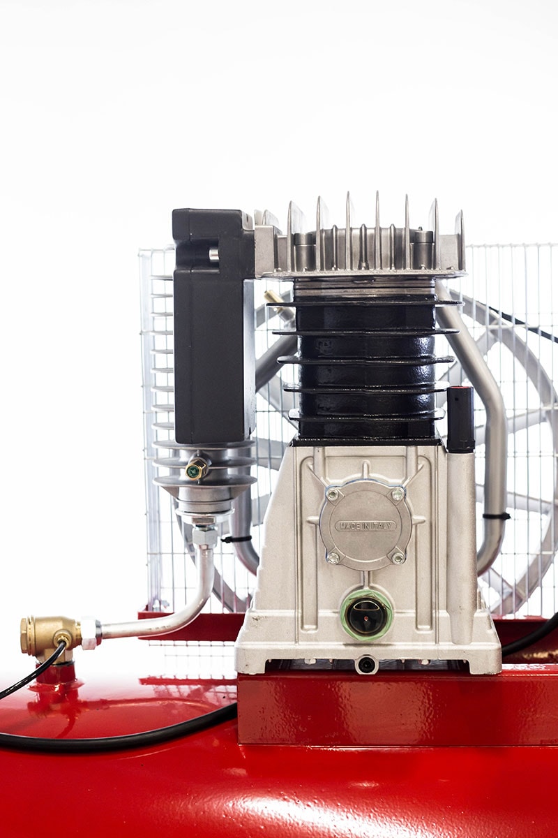 Hidasnopeuksinen kaksivaiheinen kompressori, jonka käyttöpaine on jopa 15 bar. Kompressorilohko, Abac B5900, valurautasylintereillä, väli- ja jälkijäähdytyksellä sekä painekytkimellä. Paineenalennusventtiili ei sisälly hintaan.