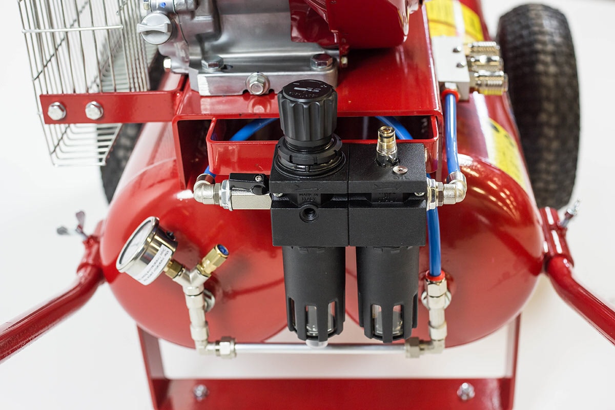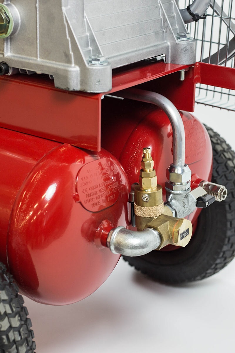 8 hv - 2×25 l säiliö - 11 bar - 700 l/min - bensiini 4-tahti – 3 ilmalähtöä