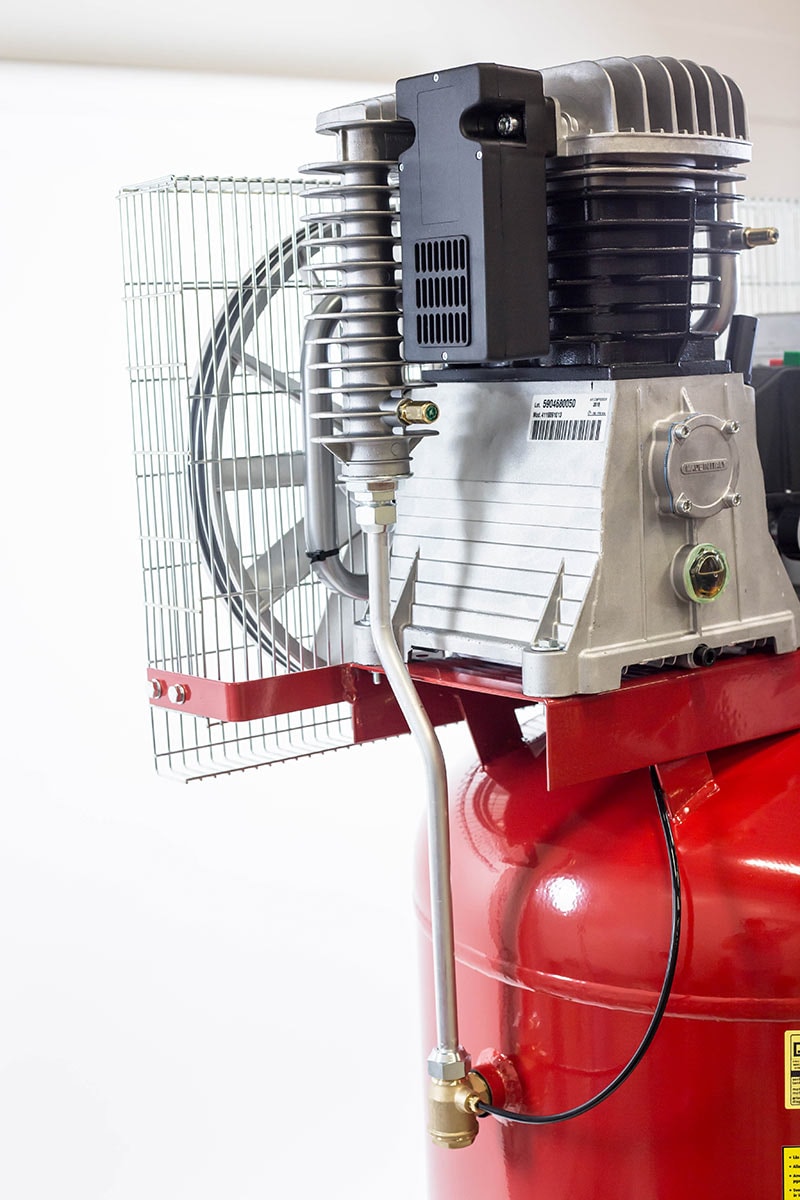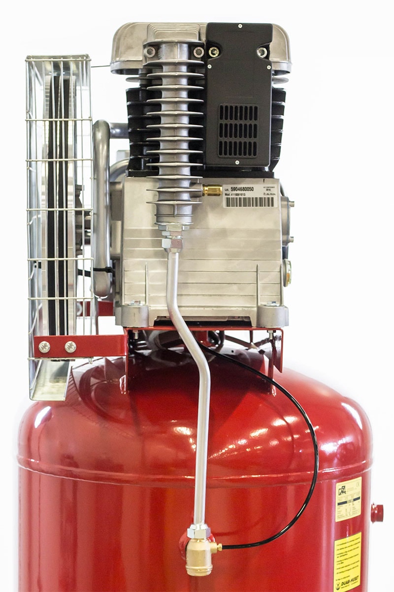 Matalakierroksinen, pystymallin kompressori seisovalla säiliöllä ja suorakäynnistysmoottorilla. Varustettu kaksivaiheisella Abac B6000 kompressorilohkolla, jossa väli- ja jälkijäähdytys sekä valurautaiset sylinterit. Painekytkin moottorisuojalla. Paineenalennusventtiili ei sisälly hintaan.