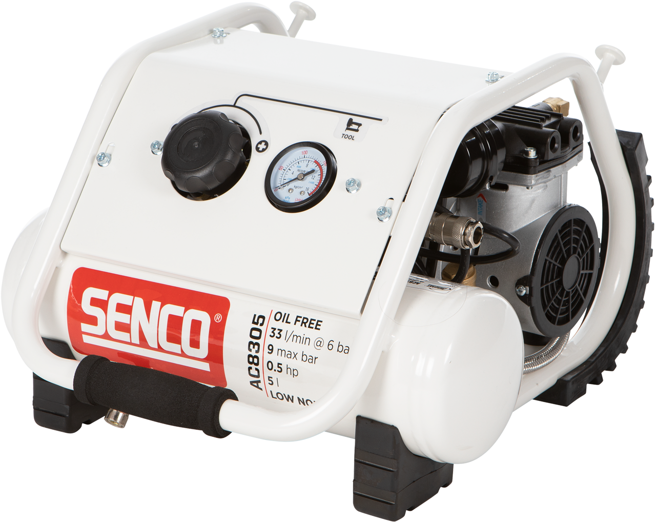 Senco AC8305 on nopea, kätevä ja kannettava 9 baarin äänieristetty kompressori.