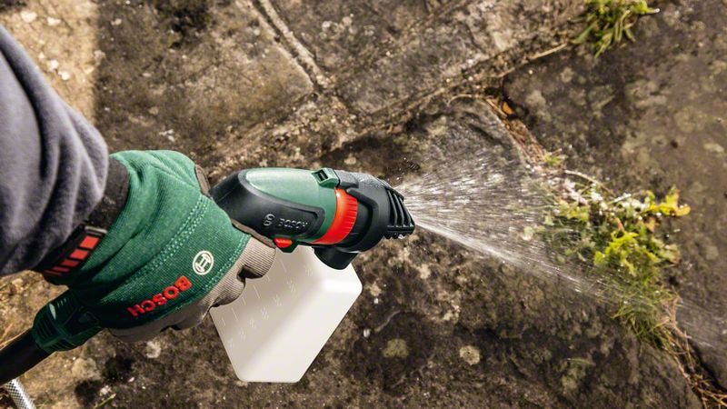 Saa nopeammat ja tasaisemmat tulokset Fontus-puhdistusaine-, nestemäinen lannoite- ja rikkakasvien torjunta-aine suuttimella. Käytännöllinen 350 ml pullo tarjoaa monia käyttötarkoituksia ilman täyttötarvetta. Suutin luo leveän, tasaisen suihkun 50° kulmassa nopeaa ja tasaista peittoa varten. Tämä käytännöllinen suutin sisältää Quick Connect -järjestelmän, joka mahdollistaa helpon liittämisen Bosch Fontus -suuttimeen.