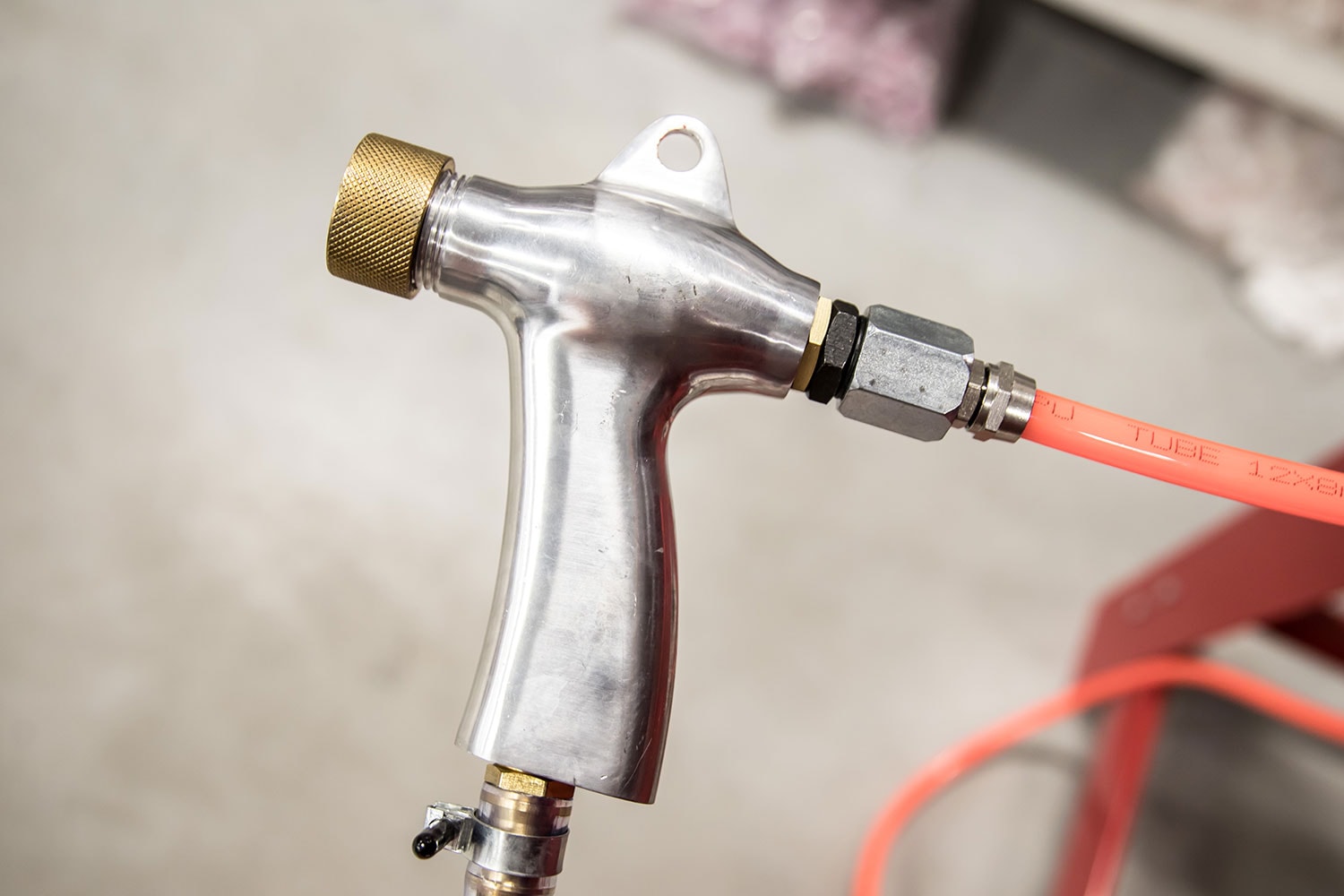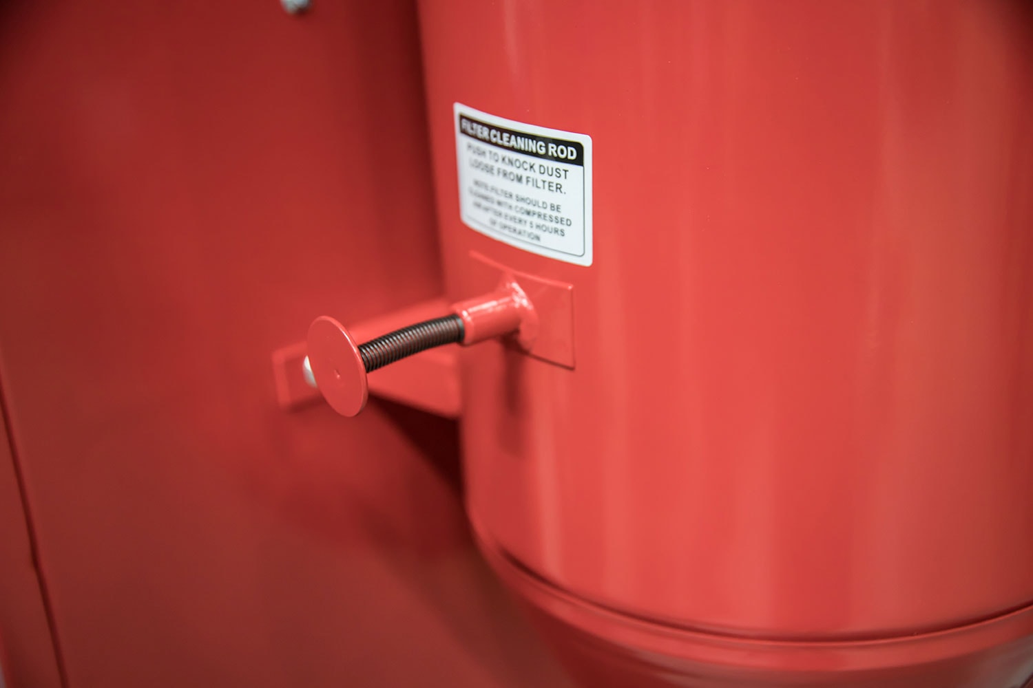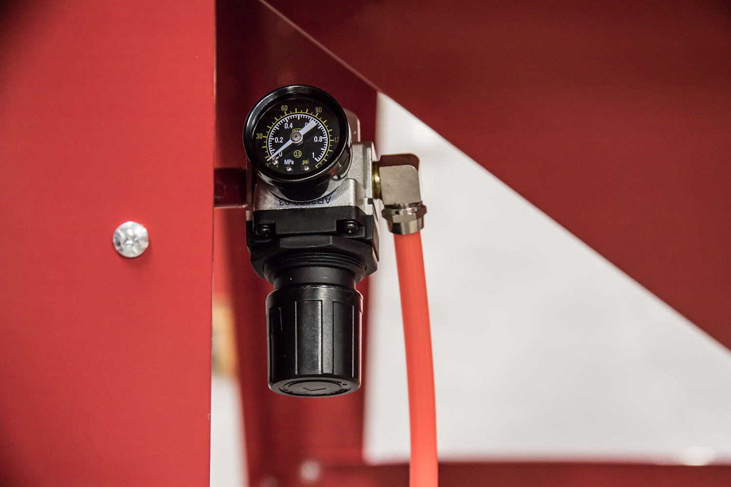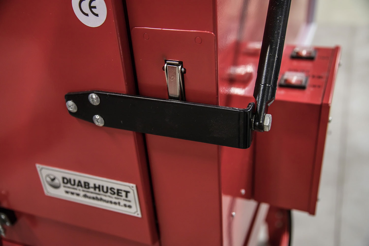 Mukana tuuletin ja siihen liittyvä hiukkassuodatin, työpöytä, sisävalaistus, puhalluspistooli, pölytiiviit käsineet, jalkaventtiili ja alennusventtiili painemittarilla.
