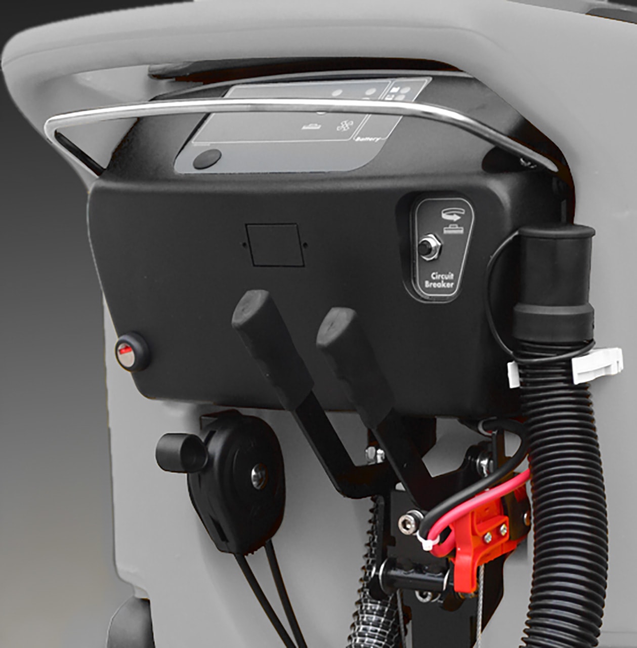 Koneessa on helposti ymmärrettävät säätimet ja se on varustettu kuolleen miehen kädensijalla. Pesurin eri osiin on helppo päästä käsiksi ja huoltaa. Täysin peittävä harjalevy reunojen ja suurten puhtaan ja likaisen vesisäiliöiden alta kuuraamiseen.