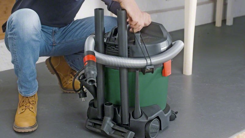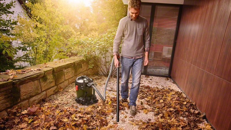 Monipuolinen AdvancedVac 20 on erinomainen ratkaisu märkä- ja kuivaimurointiin. Käytä sitä esimerkiksi lattioiden imurointiin tai työkalujen pölynpoistoon. Sen tyhjennysventtiilin kautta saat poistettua vaivattomasti veden. Puhallustoiminnolla voit puhaltaa lehdet ja roskat pois myös hankalista kohdista. Sen antistaattinen letku suojaa käyttäjää sähköiskuilta. Tämän jatkuvan pölynpoiston mahdollistavan pölynimurin voi yhdistää suoraan mihin tahansa nykyisen Bosch Home & Garden -malliston ja monien muiden valmistajien sähkötyökaluihin kätevän yleisadapterin ja kartioliitännän avulla. Se käynnistyy ja sammuu automaattisesti sähkötyökalun käytön mukaan. Tämä säästää aikaa ja vaivaa.