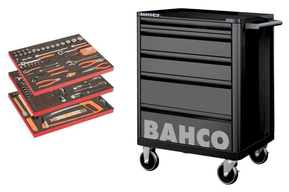 Etusivu / Autotalli ja verstas / Verstas ja säilytys / Työkalukärryt / Bahco työkaluvaunu 1472K5, musta, 5 laatikkoa ja 158 työkalua