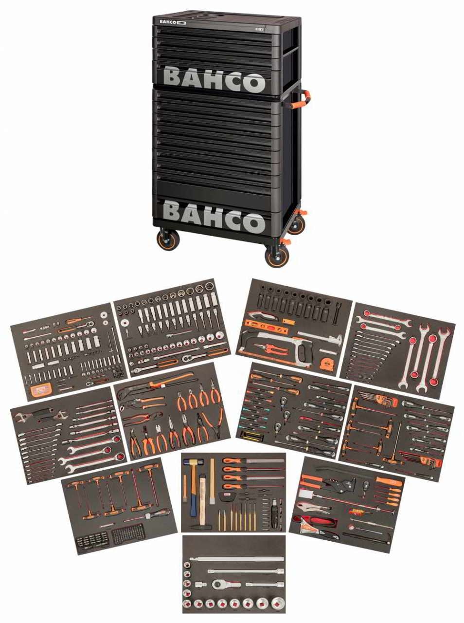 Etusivu / Autotalli ja verstas / Verstas ja säilytys / Työkalukärryt / Bahco työkaluvaunu 1477K9 Premium, musta, 9 laatikkoa + yläkaappi 1487K4, musta, 4 laatikkoa ja 556 työkalua