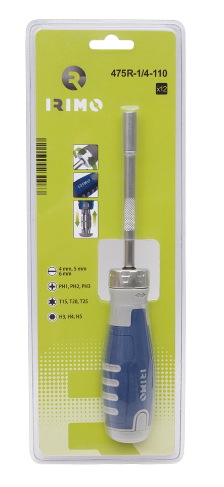 Etusivu / Koneet & työkalut / Käsityökalut / Ruuvimeisselit / Irimo Räikkäruuvimeisseli 1/4", sarja, sis. 12 kärkeä