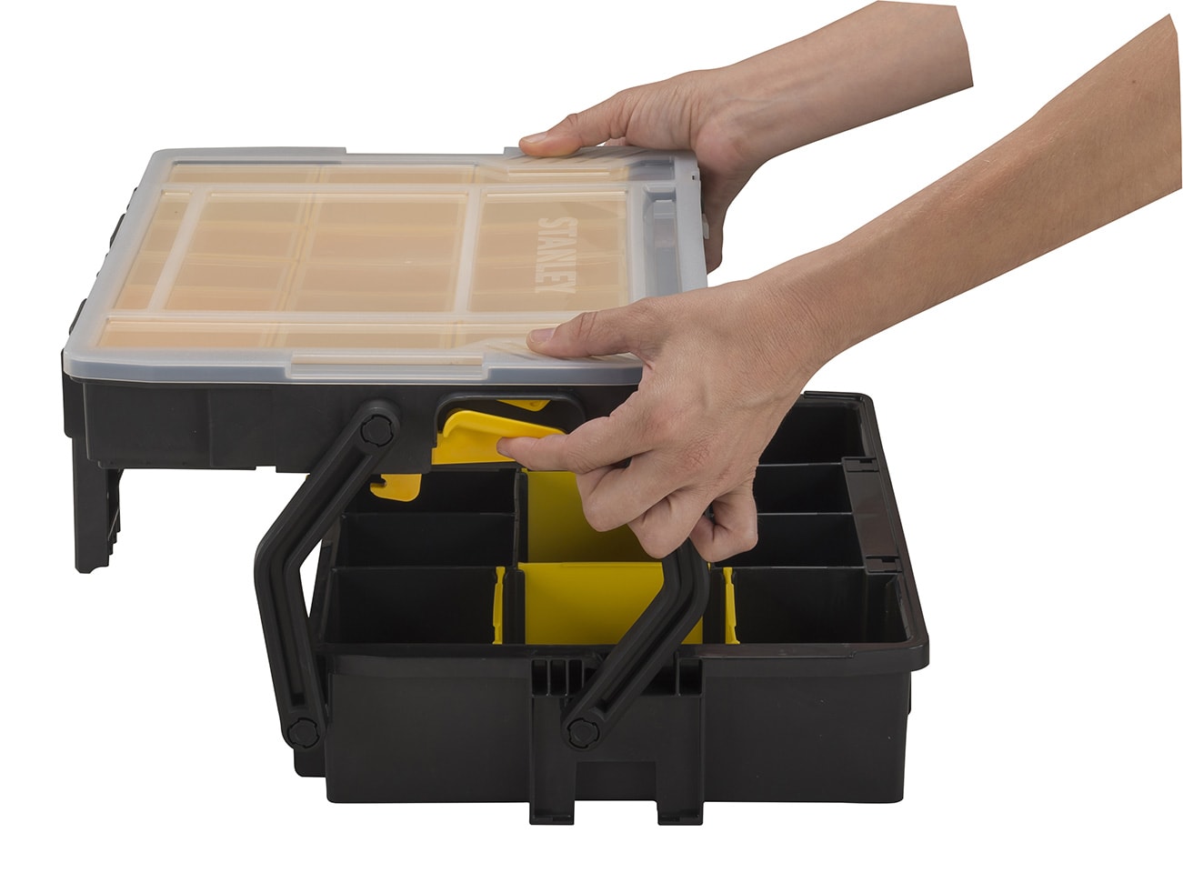 - Kaksi tasoa, toimii sekä lajittelulaatikkona että työkalulaatikkona