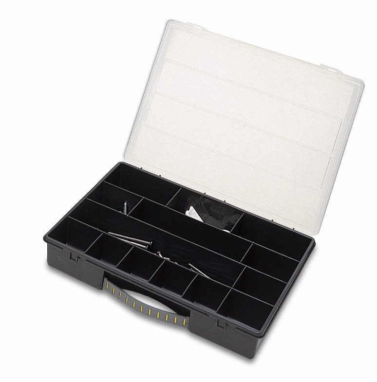 Lukittava kansi estää lokeroiden sisällön sekoittumisen kuljetuksessa.