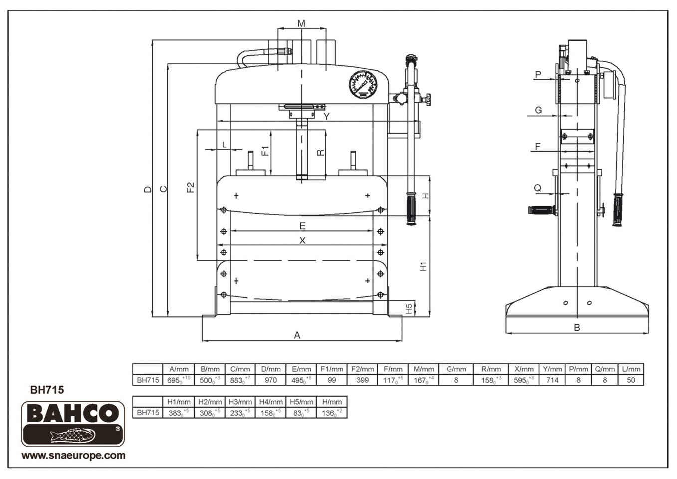 Etusivu / Koneet & työkalut / Metallintyöstö / Hydraulipuristimet / Bahco hydrauliprässi BH715, 15 t