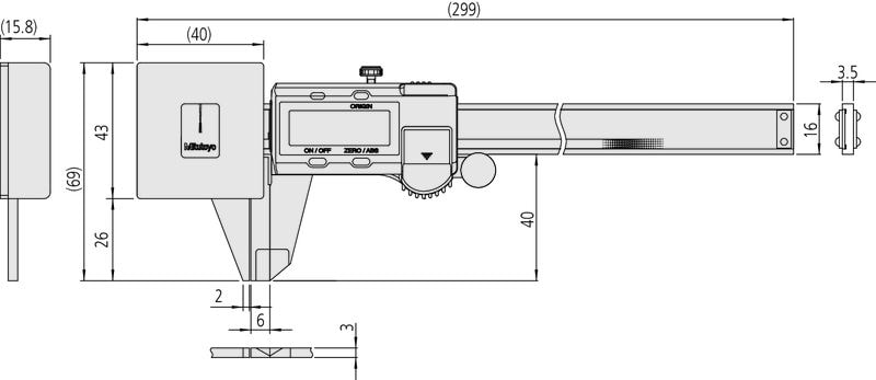 - Elektromagneettisen induktion tyyppinen ABS-lukija mahdollistaa näiden työntömittausten käytön myös siellä, missä mittausasteikon pinta voi likaantua mittauksen aikana. Lukemissignaali ei vaikuta likaantumisesta (vesi, öljy jne.) mittausasteikon pinnalla (paitsi 300 mm). Ei IP-luokiteltu.
