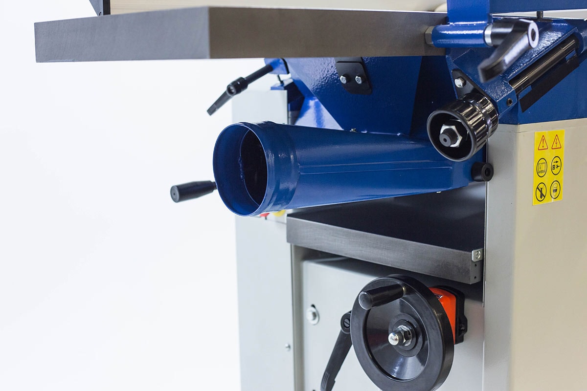 Todella tehokas ja litteä höylä tukevalla hitsatulla teräsrungolla ja valurautapöydällä. Koneessa on kolmivaiheinen 3 hv:n sähkömoottori, joka kestää raskaan työn, syöttörullat ja purkaustela ovat terästä. Höylä toimitetaan täydellisenä lastunpoistajan, höylänterän asetetyökalun kanssa sekä tason korkeuden digitaalisen osoittimen. Vaihtaaksesi oikohöyläyksestä tasohöyläykseen, molemmat pöydät voidaan kaataa pois tieltä maksimaalisen turvallisuuden ja työkappaleen yleiskuvan takaamiseksi. Tukeva leikkuri, jonka halkaisija on 75 mm, on varustettu 3 höyläteräksellä parhaan tuloksen saavuttamiseksi. Pysäytin voidaan kääntää 0° - 45° kulmaan useimpien mahdollisten höyläysmomenttien mahdollistamiseksi.