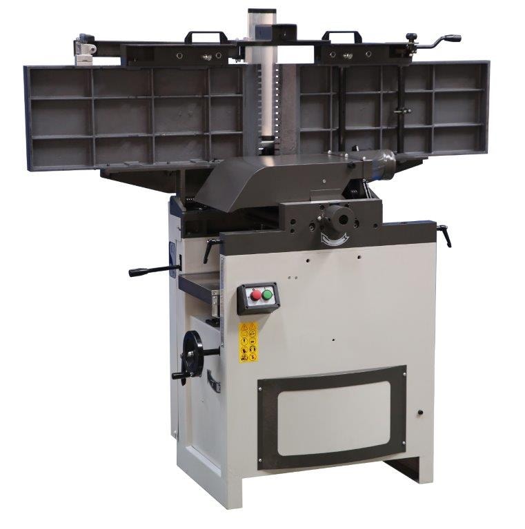Tehokas, runsas ja laadukas oiko- ja tasohöylä, jossa on kiinteät valurautapöydät ja tehokas 400 voltin kolmivaihemoottori 2,2 kW. Kone on rakennettu kiinteälle hitsatulle teräsrakenteelle mahdollisimman vakaaksi. Tämän koneen ohjauspöydät ovat standardiin nähden erityisen pitkiä ja niiden kokonaispituus on jopa 1600 mm, mikä tarkoittaa, että materiaali on paljon vakaampi pöydällä. Kone on varustettu neljällä (4) höyläysterällä parhaan suorituskyvyn ja lopputuloksen saavuttamiseksi. Vahvassa rajoittimessa, joka on myös kallistettava, on vankka kiinnityskohta, joka on erittäin vakaa parhaan tuloksen saavuttamiseksi.