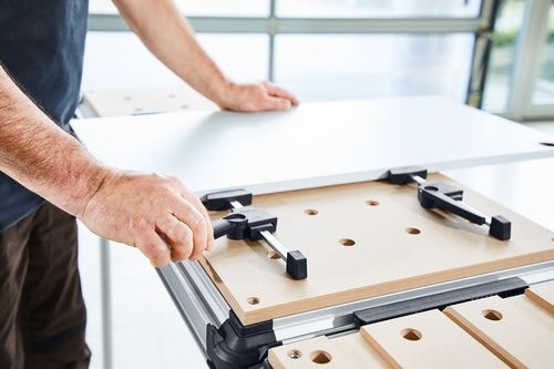 - Yksilöllisesti laajennettava työ- ja säilytystaso: siihen voi liittää helposti useampia monitoimipöytiä ja Systainer-vetolaatikoita