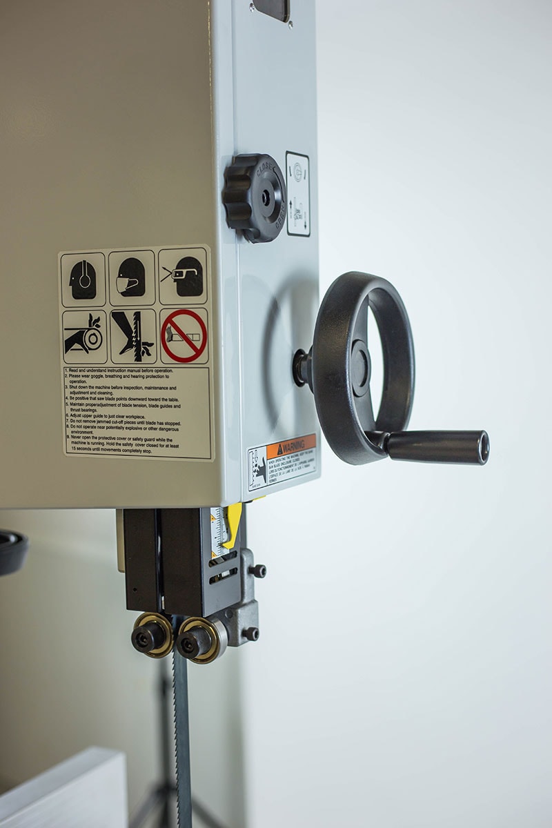Vannesaha, teollisuusmalli, tarkoitettu puusepäntöihin, teollisuuteen, kouluihin jne. Valetut kumipäällysteiset vannesahan pyörät alumiinia. Suuri valurautainen sahapöytä on varustettu asteiden mikrosäädöllä. Pöytä on viistettävissä vasemmalle 10° ja oikealle 45°. Mukana pituusrajoitin mm-asetuksella. Teränohjain kuulalaakereilla ja sahanterän osoitin oikean terän kireyden osoittamiseksi sahanterän leveydestä riippuen. Sahan korkeus asetetaan yksinkertaisella kädenliikkeellä ja se luetaan millimetriasteikolla, joka on asennettu vakaaseen korkeussäädettävään ohjausyksikköön.