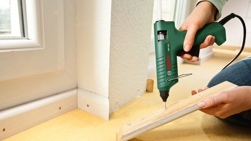 Verkkovirtakäyttöinen PKP 18 E -kuumaliimapistooli takaa nopean ja tasaisen liimansyötön ja lujat liitokset. Sen elektronisesti ohjattava kuumennusosa varmistaa tasaisen käyttölämmön ja nopean kuumennuksen. Mekaaninen syöttöjärjestelmä takaa liiman tarkan ja nopean levityksen. Se on erinomainen työkalu päivittäisiin liimaustehtäviin, kuten koristeluun ja erilaisten materiaalien korjaustöihin (esimerkiksi puu, kartonki, kivi, yms.). Siinä käytetään 11 mm:n liimapuikkoja ja se on varustettu erikoispitkällä suuttimella, jolla liiman saa levitettyä helposti myös ahtaisiin kohtiin.