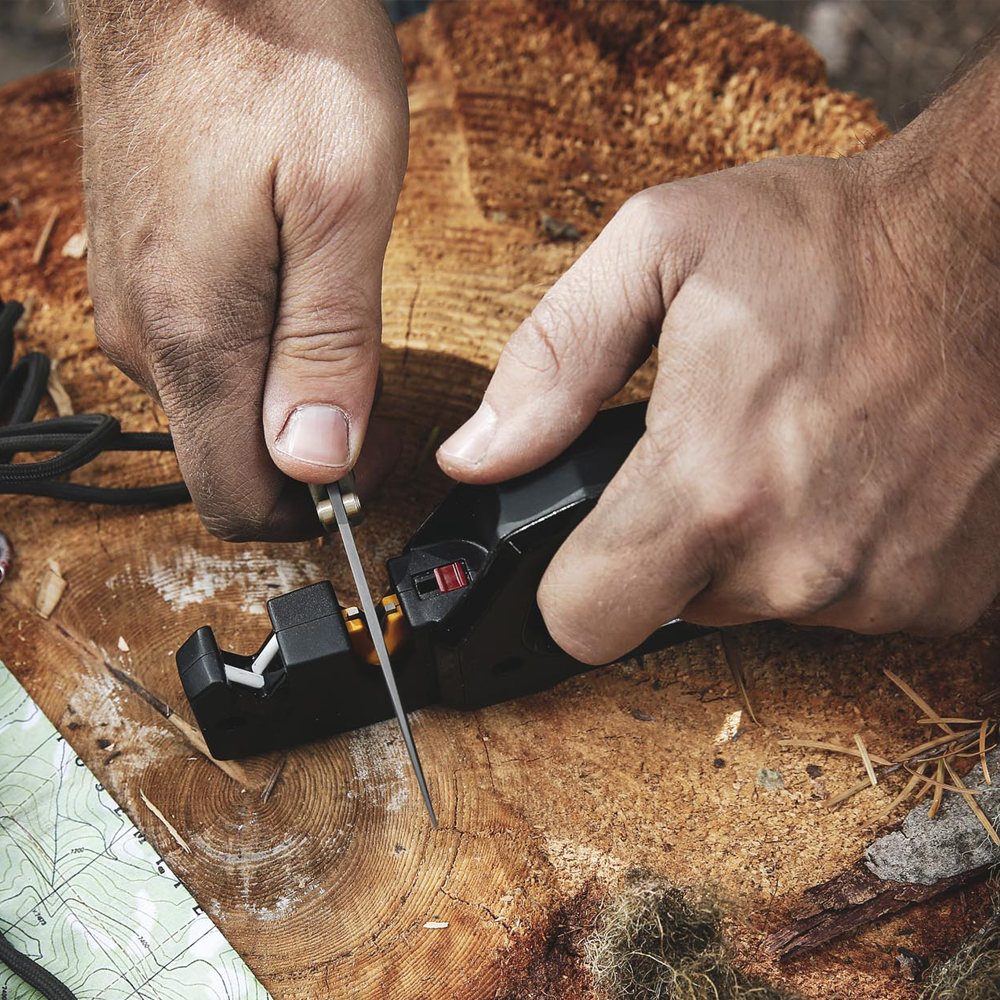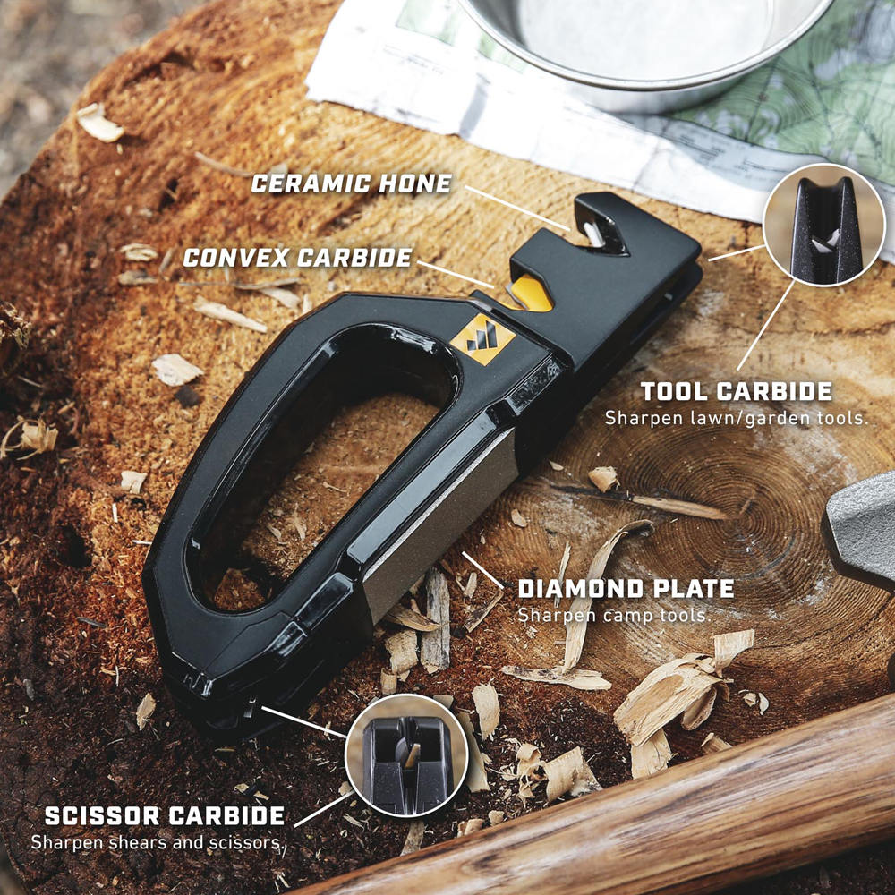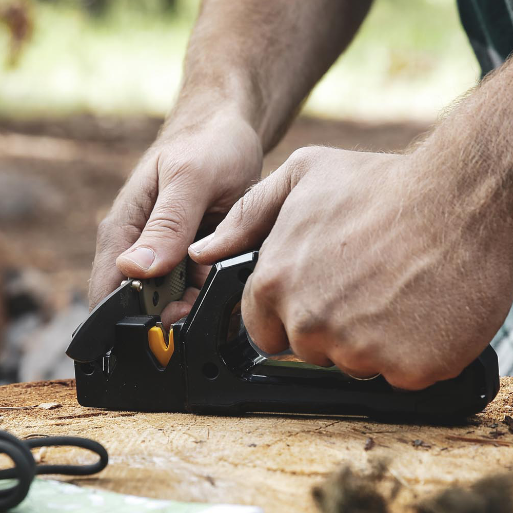 Work Sharpin kädessä pidettävä veitsi ja työkaluterä. Täydellinen veitsien, saksien, kirveiden ja puutarhatyökalujen teroitukseen.
