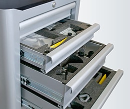 - Pehmeästi sulkeutuvat, kuulalaakeroidut laatikot. Keskuslukitus suojaa kaikkia laatikkoja.