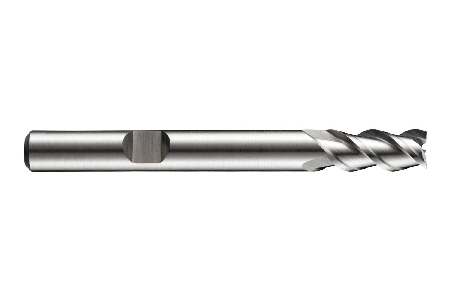 Lyhyt päätyjyrsin standardin DIN 844 K mukaan Weldon-varrella.