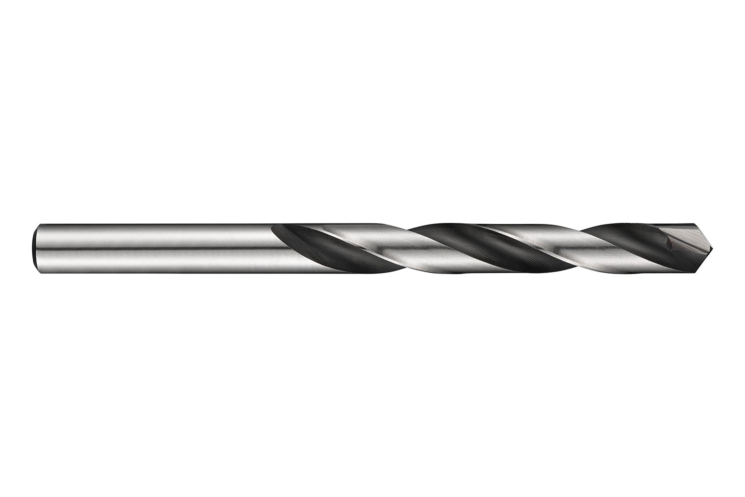Lyhyt kierrepora, jossa on DIN 338 -standardin mukainen lieriömäinen varsi ja 118°:n 4-kulmainen kärki.