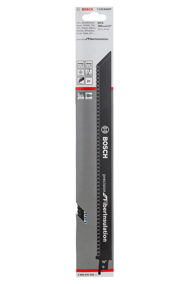 S 1213 AWP Precision for Fiber Insulation -puukkosahanterä on tarkoitettu erikoismateriaalien tarkkaan ja siistiin pistosahaukseen. 22 mm leveän ja 1,5 mm vahvan rungon ansiosta terä ei taivu vaan leikkaa tarkasti ja halutussa kulmassa. Terävä tarkkuushiottu sahalaita leikkaa repimättä, ja hiottu kapea kärki mahdollistaa pistosahauksen. HCS-kovateräsmateriaalista valmistettu terä soveltuu erityisesti kuitueristysmateriaalien sahaamiseen. Pitkä 300 mm:n terä mahdollistaa 250 mm:n leikkaussyvyyden.