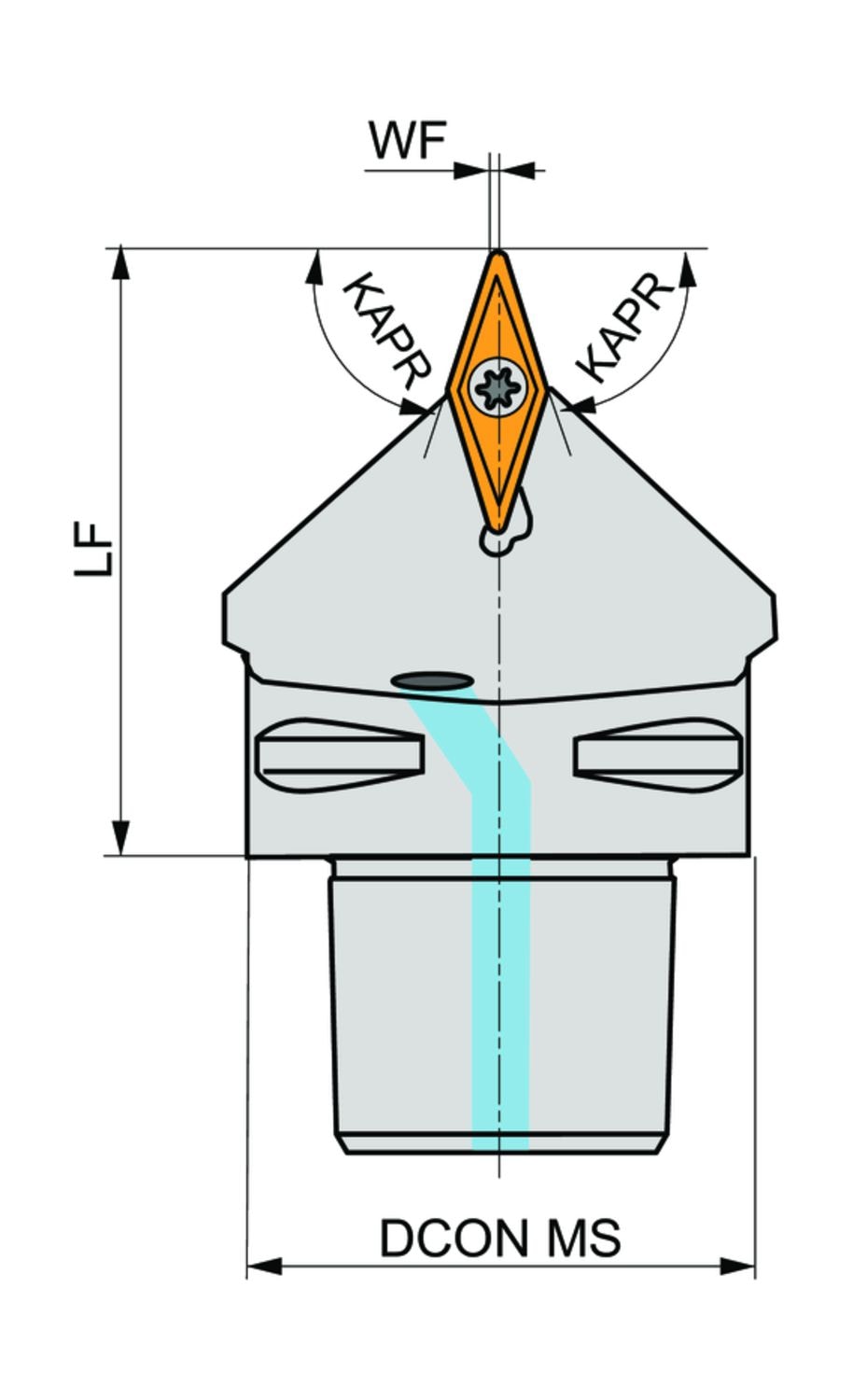 Sorvausterän pidin ruuvikiinnityksellä, joka pitää 35° rombimaisen positiivisen vääntökärjen, jonka sisähalkaisija on 9,525 mm, paksuus 4,76 mm (ISO-merkintä VB.. 1604.. tai VC.. 1604..), neutraali 72°30' sivuleikkaus, suora varsi ISO 26623 (Polygonivarsiliitäntä) koko C4, 50 mm ulostulopituus sorvaukseen, kopiosorvaukseen yhdessä tai useammassa suunnassa ja pituussorvaukseen ilman olkapäätä