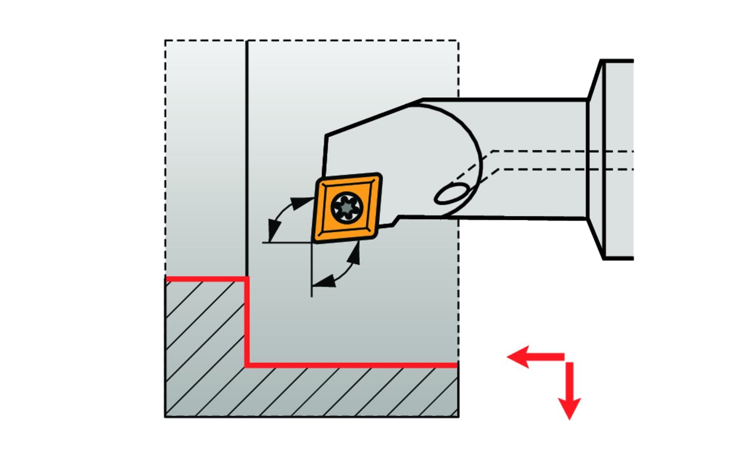 Sorvauspuomi ruuvipuristimella 80° rombiselle positiiviselle kääntöterälle, jonka sisähalkaisija on 9,525 mm, paksuus 3,97 mm (ISO-merkintä CC.. 09T3..), vasen 95° sivuterä, siirretty varsi ISO 26623 (Polygon Varsi-liitäntä) koko C4, 11 mm leveys ja 70 mm ulkonemispituus sisäiseen poikkisorvaukseen ja sisäiseen pituussorvaukseen olkapäällä tai ilman