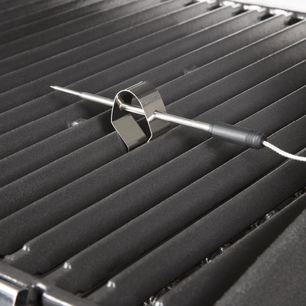 Lämpötila on paras tapa selvittää, onko ruoka valmista, mutta joka kerta kun nostat grillin kantta menettää grilli osan lämmöstä ja valmistusprosessi hidastuu. Tämän sivupöydän lämpömittarin avulla voit seurata koko prosessia grillin ulkopuolella ja lukea kaksi lämpötilaa samanaikaisesti. Integroitu ajastin ja laaja lämpötila-asetus jokaiselle lihalajille tai mahdollisuus asettaa oma lämpötila.