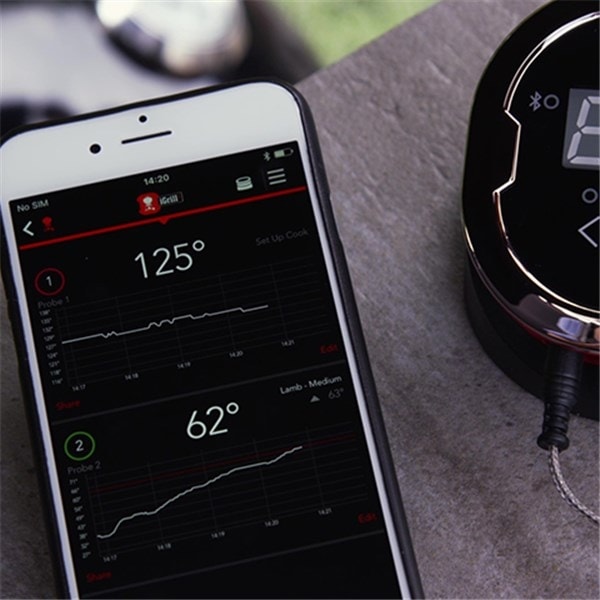 Sovellukseen yhdistettävä iGrill 2 -lämpömittari valvoo jopa neljän eri lihan kypsymistä koko grillauksen ajan ja ilmoittaa älylaitteellasi, milloin ruoka on valmista tarjoiltavaksi.