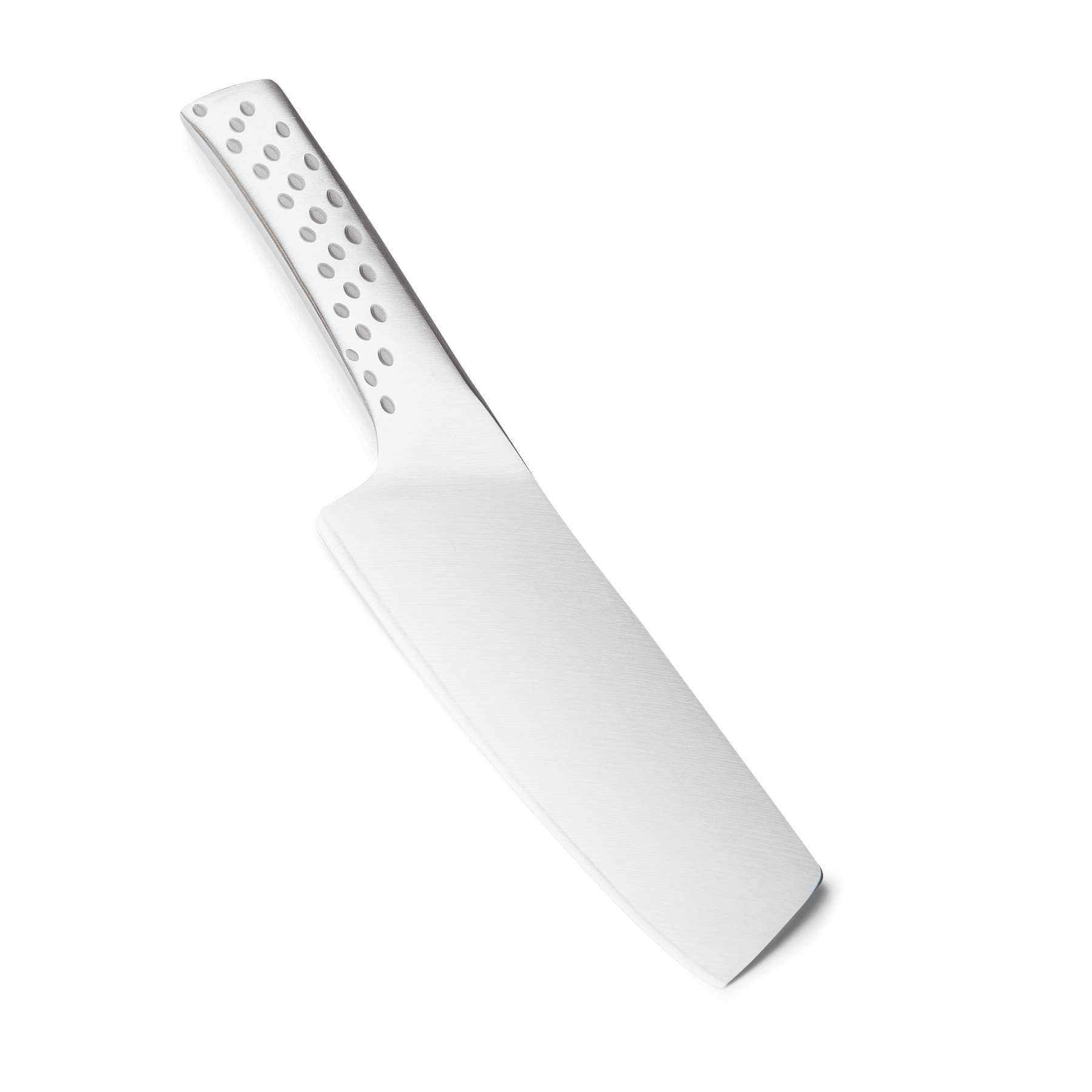 Deluxe-viilennusveitsi on yhtä terävä kuin tyylikäs ja mahdollistaa kaikkien vihannesten helpon leikkaamisen, jotta voit toteuttaa unelmasi maukkaista pataruoista, salaateista ja vaikuttavista lisukkeista. Veitsi on valmistettu ruostumattomasta teräksestä ja tuo korkeaa laatua ja toiminnallisuutta keittiöösi.