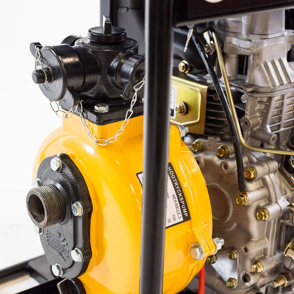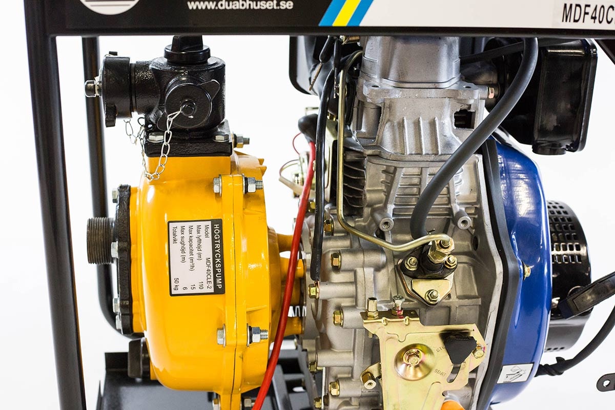 Dieselkäyttöinen korkeapainepumppu sähkökäynnistyksellä ja suurella polttoainesäiliöllä. Alumiininen pumppukotelo kaksinkertaisilla teräksisillä juoksupyörillä. Kaksi poistoaukkoa ja sisäänrakennettu takaiskuventtiili. Mukana käynnistysakku. Pumppu sopii käytettäväksi esimerkiksi huuhtelupumppuna ja palontorjuntaan.