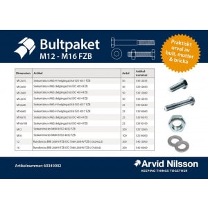 Etusivu / Sähkö ja rakentaminen / Kiinnitys / Pultit, mutterit ja aluslevyt / Arvid Nilsson Pulttisarja M12–M16 FZB