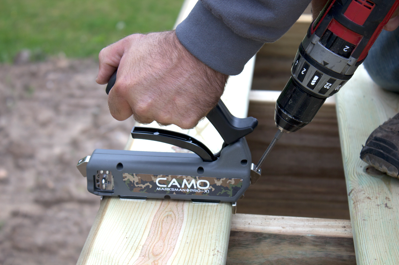 Camo ruuvikiinnittimissä on vaihdettavat välikappaleet kokoina 1,6 mm, 3,2 mm ja 4,8 mm. Tarkista aina suositeltu reuna-reuna -etäisyys ja muut ohjeet valitsemallesi puutavaralle. 34 mm paksujen terassilautojen tai uritettujen terassilautojen asennuksessa ruuvi tulisi upottaa erityisellä bitillä parhaan kiinnityksen saavuttamiseksi.